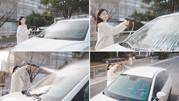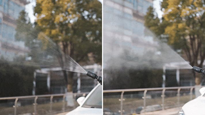 フォームボトルを外し、5in1ノズルに付け替えてそのまま水洗い。高圧水流で汚れを一気に洗い流します。手間なくスピーディーに、洗車が完了します。