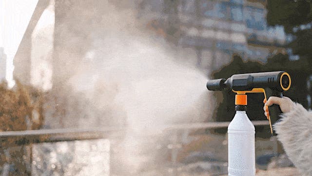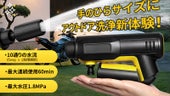 屋外・室内の掃除に対応する、軽量コンパクトなコードレス高圧洗浄機です。