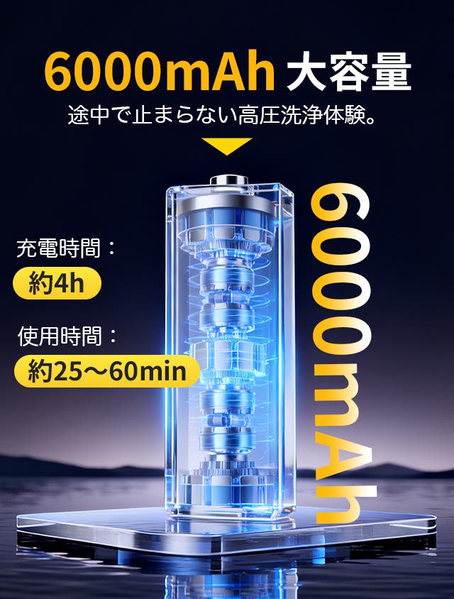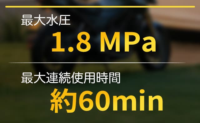 同シリーズの中でも、本製品は最大水圧1.8MPaの高い洗浄力を実現しつつ、最大連続使用時間約60分と長時間の使用にも対応しています。
