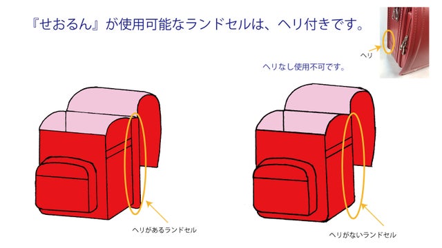 ヘリ付きのランドセルにのみ取り付けられる仕様ですので、ご使用のランドセルにヘリが有ることをお確かめ下さい。