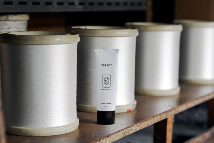 このとき湯に溶け出す天然のたんぱく質「セリシン」は、長いあいだ活用されることなく、排水とともに捨てられてきました。