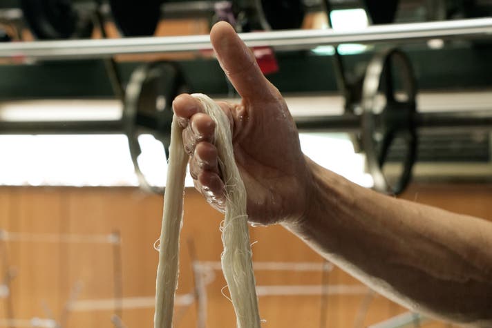 水仕事を繰り返す精錬の職人たちの手肌の美しさに着目し、これまで活用されてこなかった天然のたんぱく質「セリシン」の可能性について研究が進みました。