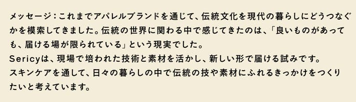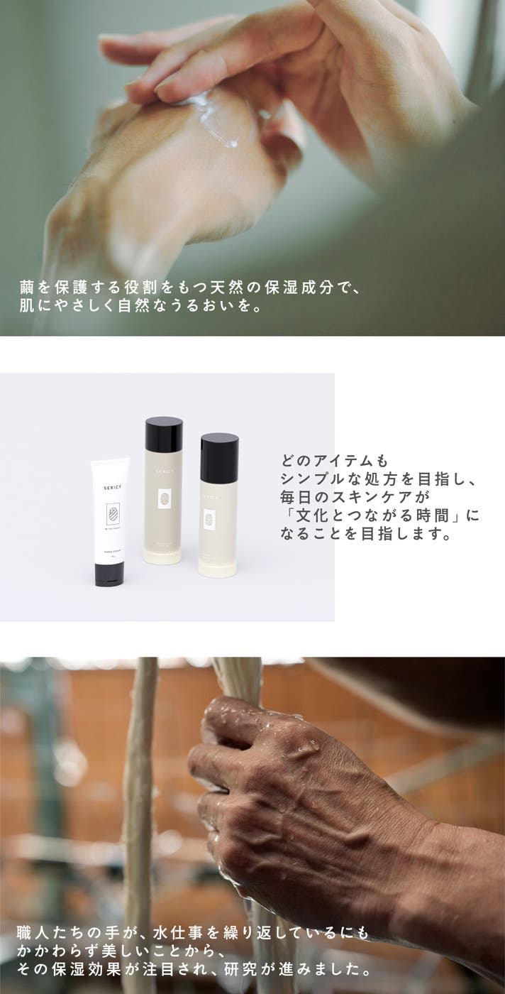 - 西陣織の製造工程で生まれる天然保湿成分「セリシン」を活用したスキンケアブランドです
