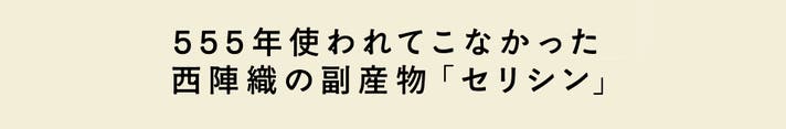 Sericyは、西陣織の製造工程で生まれる成分「セリシン」*を活用したスキンケアブランドです。私たちは、555年ものあいだ、織物づくりの現場では洗い流され、使われることのなかったこの成分に新たな価値を見出しました。