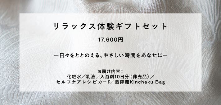 肌をうるおし、自分を整える、そんな穏やかな時間を贈るリラックスギフトです。