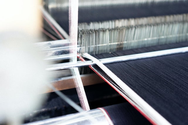 ・織は、糸に負担をかけないシャトル織機で製織 製織:弊社、岡本テキスタイル