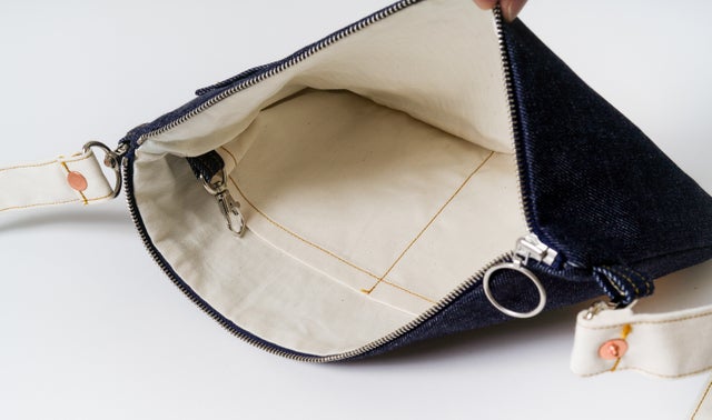 開発した70'sヴィンテージデニムを使用したサコッシュ。こちらも世田谷デニムLABOで縫製します。