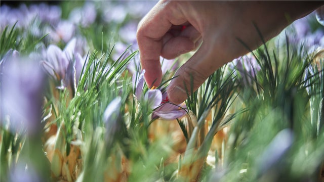 一般的にサフランはとても高価なスパイスとして知られています。その理由は、サフランは花のめしべになりますが、花は1年に1度しか咲きませんし、1㎏のサフランを収穫するには、約50万本のめしべ、花にすると約17万個の花が必要になります。花が咲くわずかな期間の間にそれをひとつ、ひとつ手作業で摘み取ります。