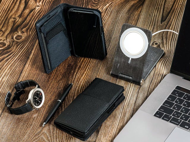 手帳型スタイルは収納力も抜群で液晶割れの心配も少なく、大人の雰囲気。