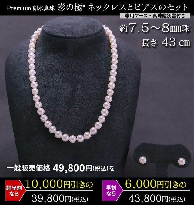 一般販売価格 Premium湖水真珠 彩の極 約7.5~8mm珠ネックレスとピアスのセット × 1点