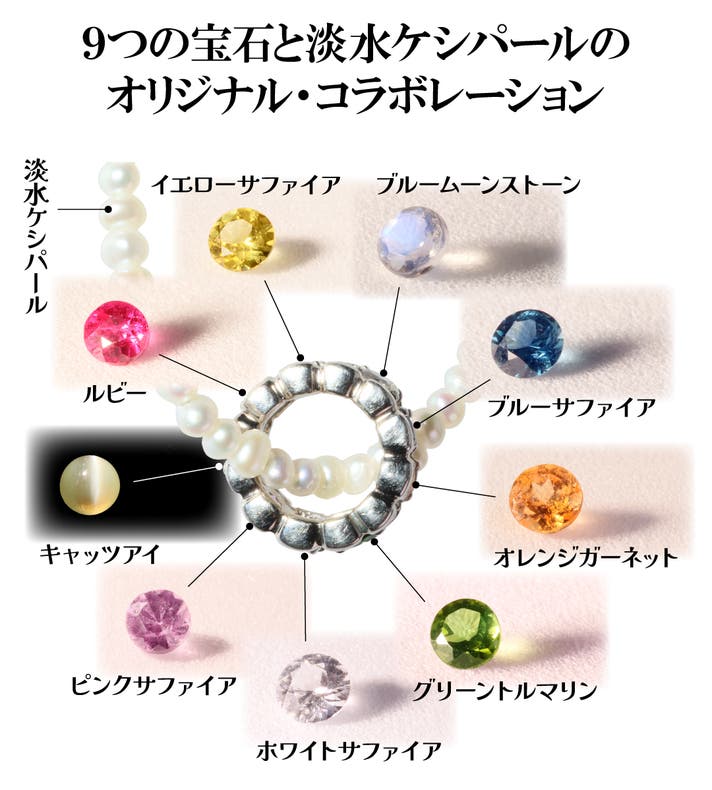 一度に9種類もの宝石とパールを身につけることは、なかなかないと思います。これなら、それが実現できます。ぜひ、カジュアルに楽しんでいただけたらと思います。