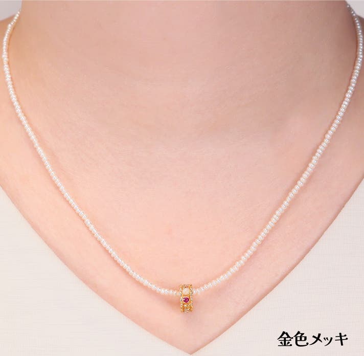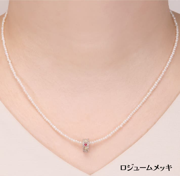 - 9つの宝石を一周ぐるりと豪華に取り巻いたお守りペンダントトップと淡水ケシパールのコラボ