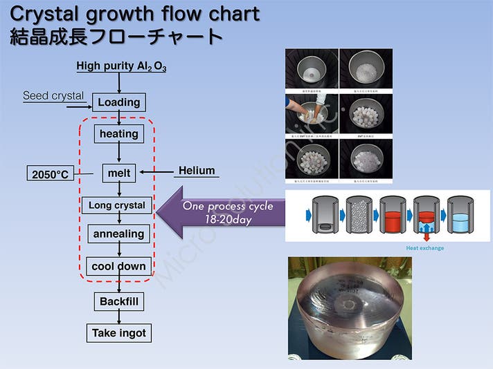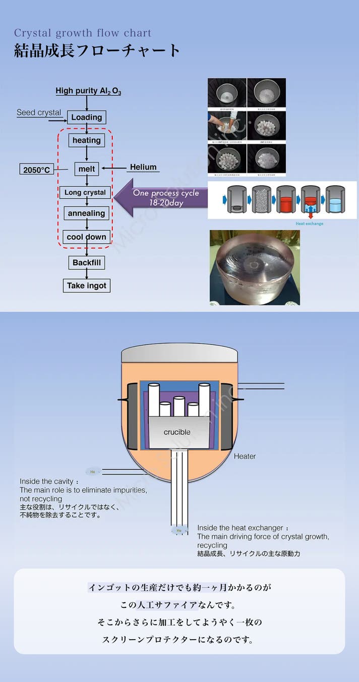 そんな中、現地企業の紹介で、サファイアインゴットの製造からスライス・研磨・加工まで を一貫して手がける中国内陸部の信頼できる工場と出会い、ようやく量産体制が整いまし た。