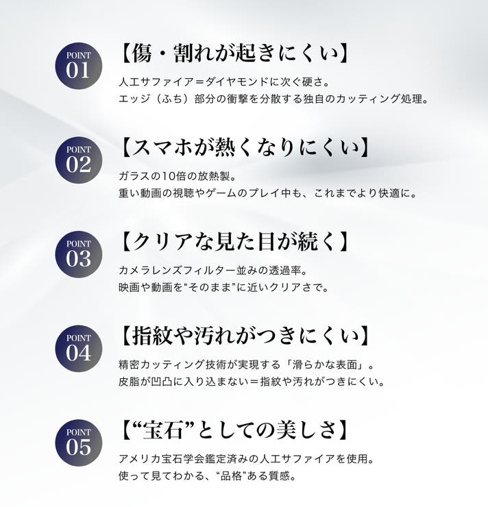 スマホをよく落とす方、熱や画質に敏感な方、美しさと強さを両立させたい方におすすめで す。