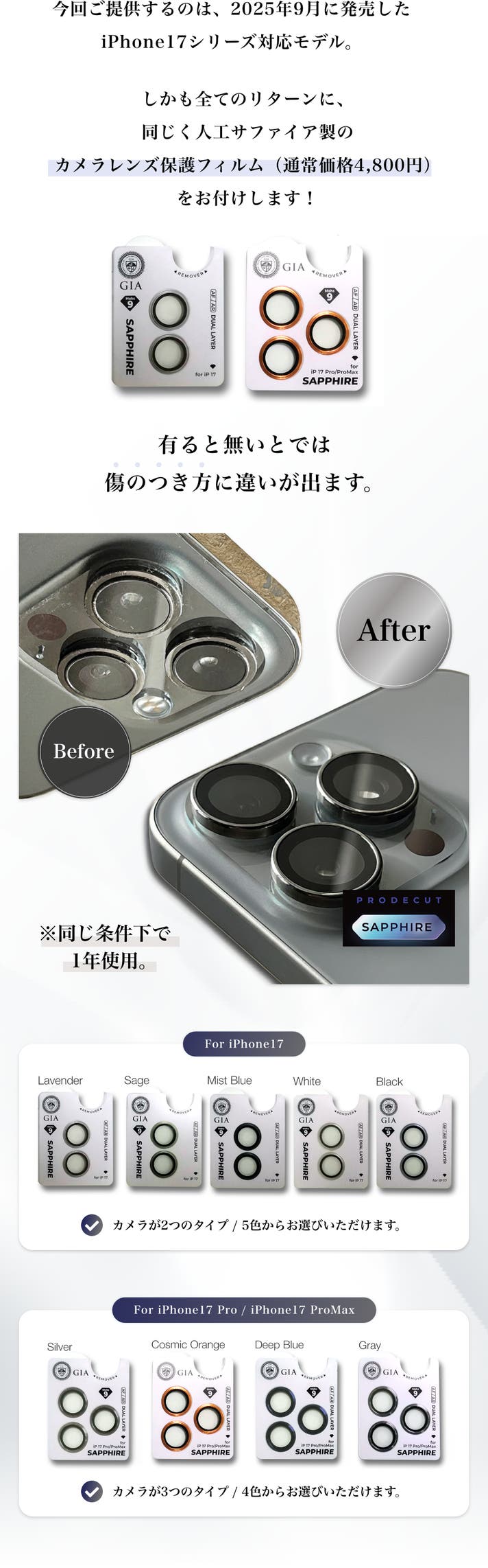 Sapphire Camera Lens Protector for iPhone 17 シリーズ 4,800-