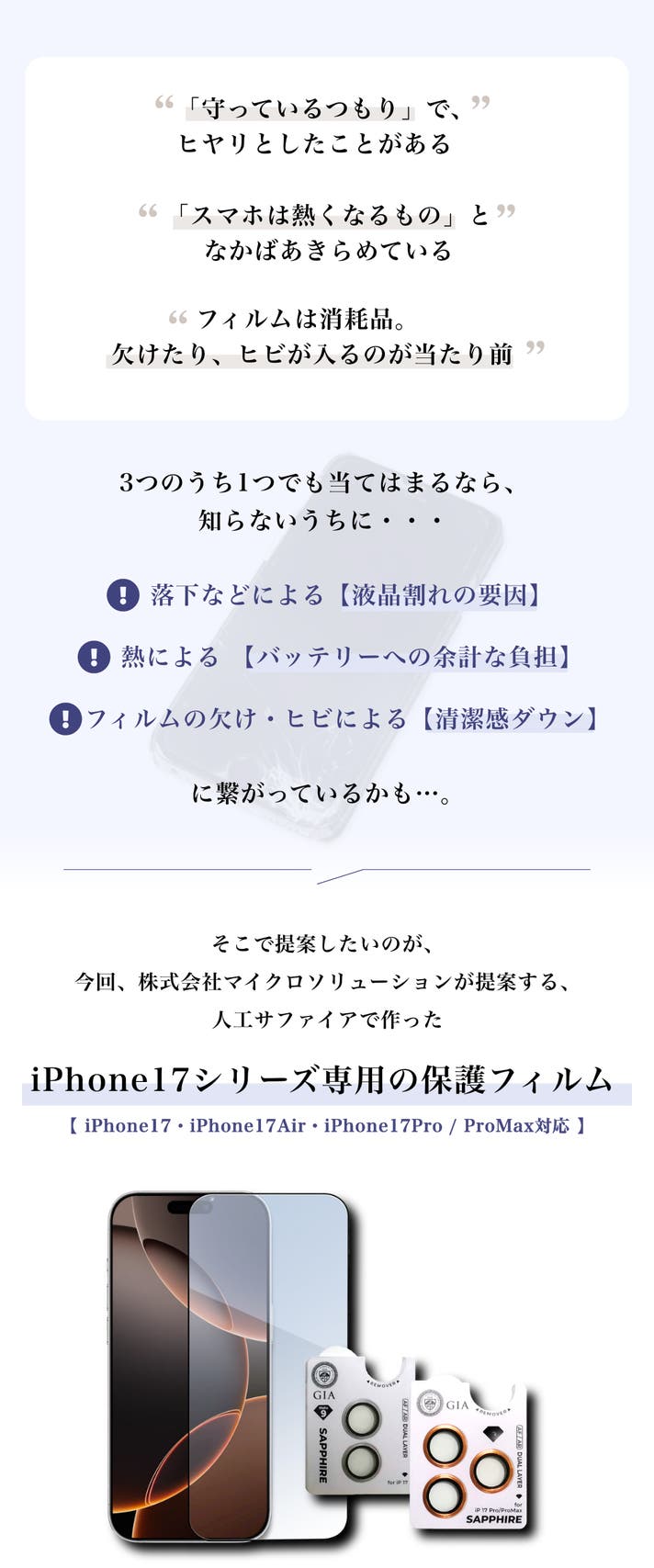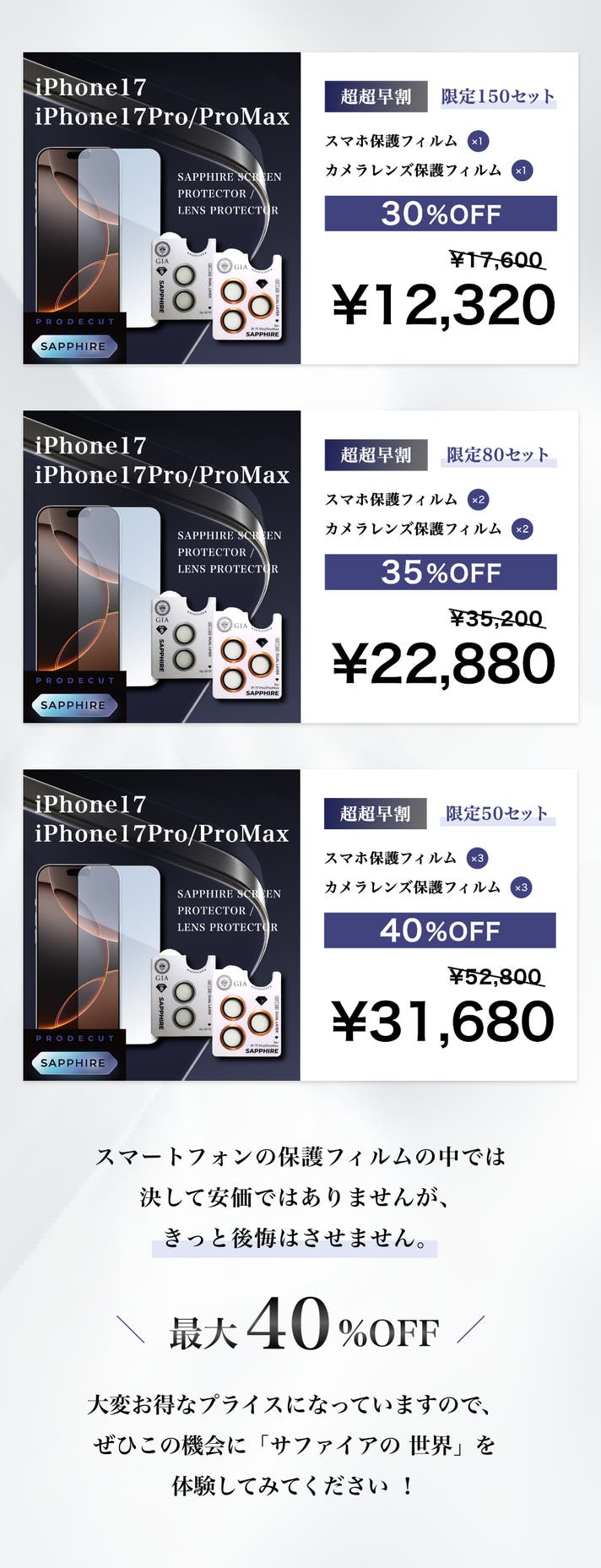 Sapphire Screen Protector for iPhone 17 シリーズ 12,800-