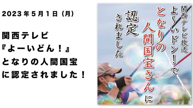 2023年5月1日 関西テレビ「よ~いドン!」となりの人間国宝さんに認定 放送
