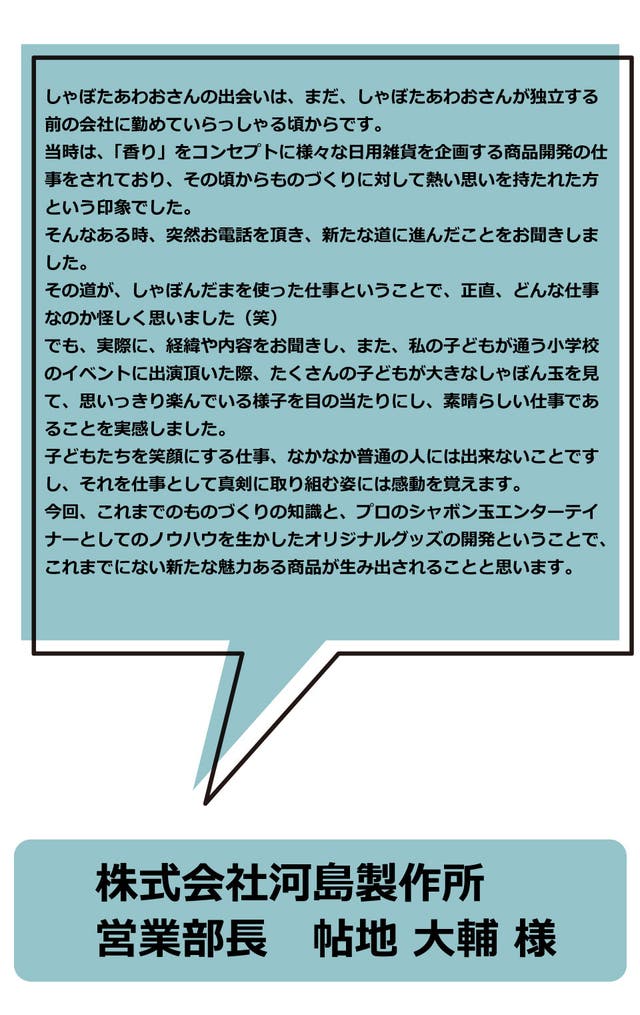 - シャボン玉を通して、沢山の人に笑顔を届けたい