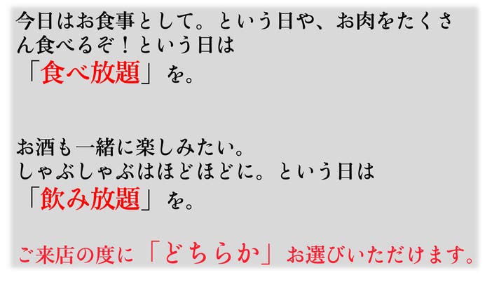 - 全店で利用可能なVIP会員募集【三大和牛食べ放題】or【お客様絶賛の飲み放題】がサービスに
