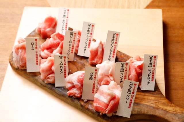- 独自のルートで入手した幻ほろよいポーク、綾ぶどう豚一頭買いだからこそ実現、14部位の食べ比べ