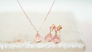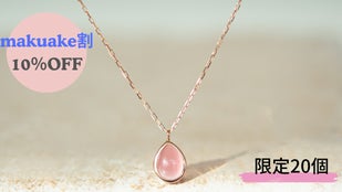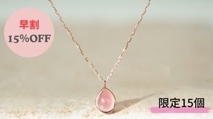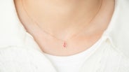 雫型の天然石を使用したペンダントはシンプルでありながらエレガントな印象を与えてくれます。ピンクゴールドのチェーンが肌に優しく馴染み華やかさを引き立てます。