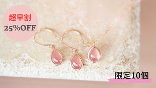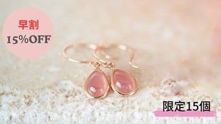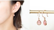雫型の天然石をあしらったピアスは揺れるデザインが特徴で顔周りを華やかに演出します。ピンクゴールドの輝きが肌のトーンを明るく見せます。