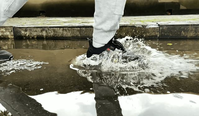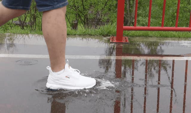 雨の日にはこの靴の魅力が発揮されます!アッパー素材には液体に敏感なポリマーが含まれており、湿気の多い環境では、防水機能が向上し、足をドライに保ちます。