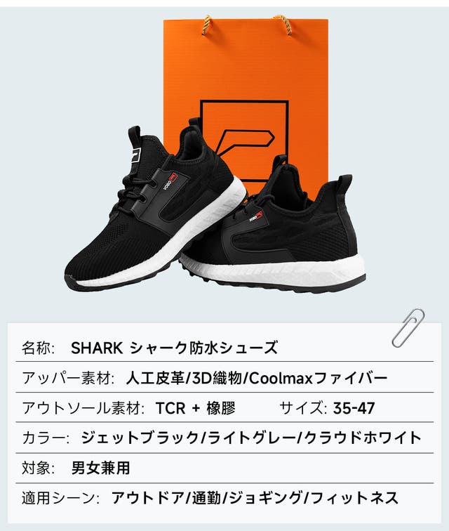 ・プロジェクトの属性:「SHARK」防水シューズ ・代理店によるサポート:日本語カスタマー対応 ・実行者(国):日本 ・企画国:日本 ・製造国:中国 ・使用感などに関しては、感じかたに個人差が予想される製品でございます。そのため、使用感等に関する返品・返金はお受けいたしかねます。 ・初期不良以外に関する返品・返金はお受けいたしかねます。 ・モニター環境によって、画像の色が実物と異なって見える場合がございます。 ・本プロジェクトを通して想定を上回る皆様からの応援購入を頂き、現在進めている環境から量産体制を更に整えることができた場合、正規販売価格が販売予定価格より下がる可能性もございます。 私たちは製品を予定通りお届けできるよう迅速且つ丁寧に進めるよう最善の努力を尽くしますが、以下記載にあるような事情により止むを得ずお届けが遅れる場合があります。予めご了承ください。 ・海外輸送中のトラブルや通関時のイレギュラー等で、お届け時期が遅れる場合があります。 ・工場の都合や想定以上の応援購入があった場合など、配送予定が大幅に遅れる可能性があります。 ・開発中の製品につきましては、デザイン・仕様が一部変更になる可能性もございます。 ※本文中に記載させていただいたスケジュールは、あくまでプロジェクト公開時点の予定です。応援購入の性質上、配送遅延のおそれがございます 原則として、配送遅延に伴う応援購入のキャンセルはできませんが、リターン配送予定月から3ヵ月を超えた場合には、希望者に限りキャンセルにて対応させていただきます。 以上の注意点につきましてあらかじめご理解とご了承いただいた上で応援購入くださいますよう、よろしくお願い申し上げます。 最後に、本製品を手に取った皆様に喜んでもうえるよう、チームメンバー一同心を込めて対応していきますので、 応援よろしくお願い致します。