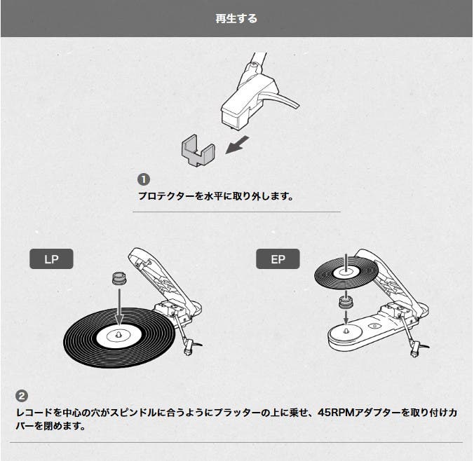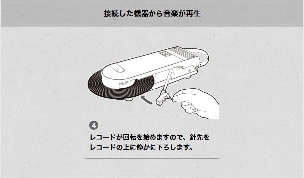 レコードに手で針を落とすことで、アナログレコードならではの操作体験をお楽しみいただけます。