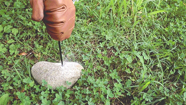 硬いと感じる地面では、平面の板状のため、回転させることで周りに隙間ができ、簡単に引き抜くことができます。↓