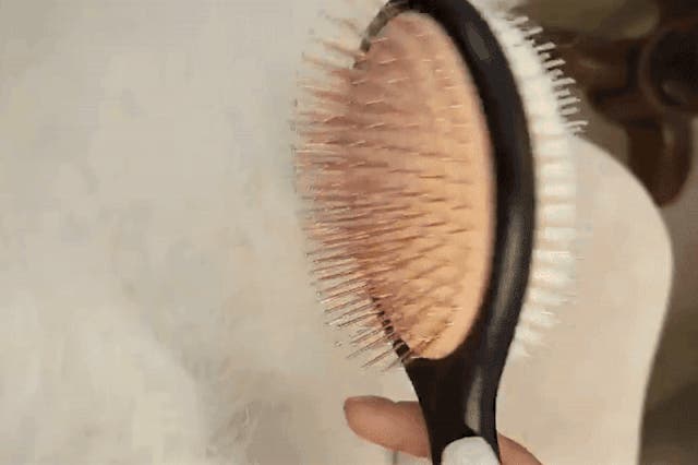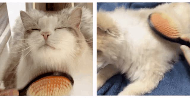 ふわふわしたクッションで、ワンちゃんやネコちゃんの体の屈曲に合わせて柔らかくブラッシングでき、ペットも痛く感じないので毛の奥まで確認することができます。