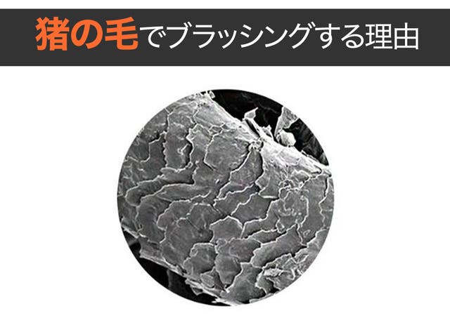 ナイロンブラシは表面が滑らかなので毛に溜まったほこりやキューティクルを除去するのが難しいですが、猪毛の場合はキューティクルを整えることができます。