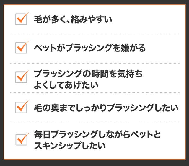 ペットのお風呂の前後、散歩後などに気軽にブラッシングしてください。