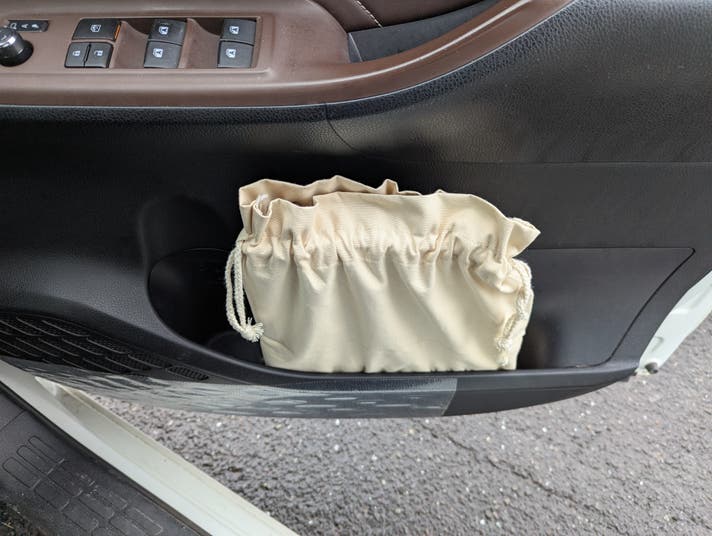 薄型・軽量設計だからこそ、走行中はドアポケットやシートバックポケットにスマートに収まります。車内のスペースを有効活用できます。