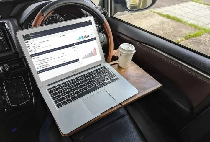 そんな経験はありませんか?「折りたたみ車載デスク:Via(ヴィア)」はウォールナットの美しい木目でいつもの車内をワンランク上の会議室へ変貌してくれます。