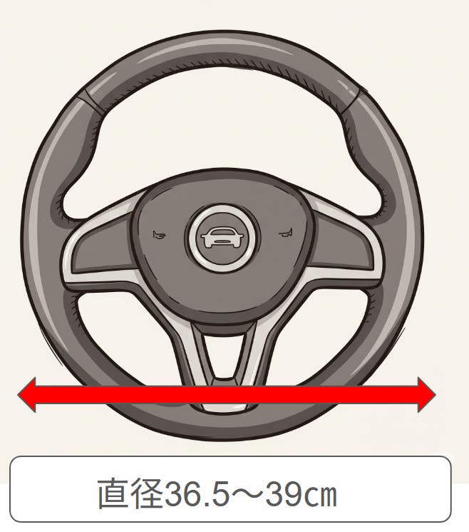 一般的なハンドルサイズ(直径36.5~39㎝)に対応。工具不要で、ほとんどの車に取り付け可能です。