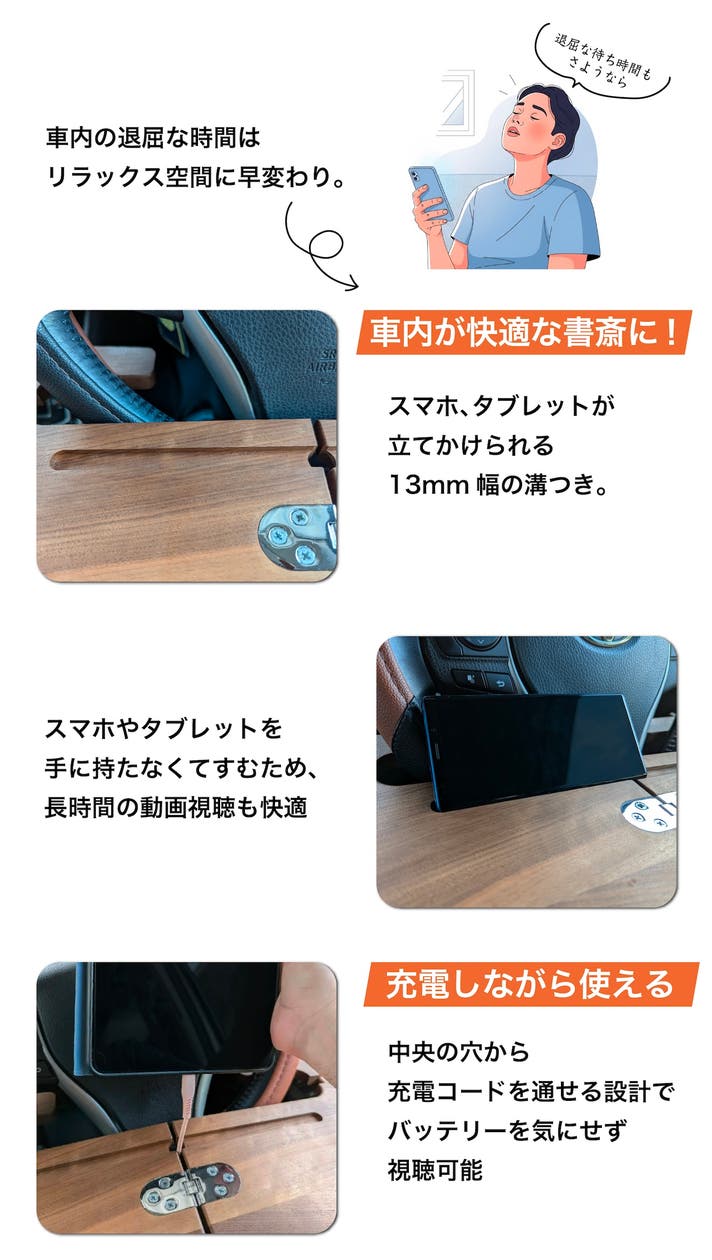 車内での時間を、心から安らげる、価値あるひとときに変える特別なデスクです。