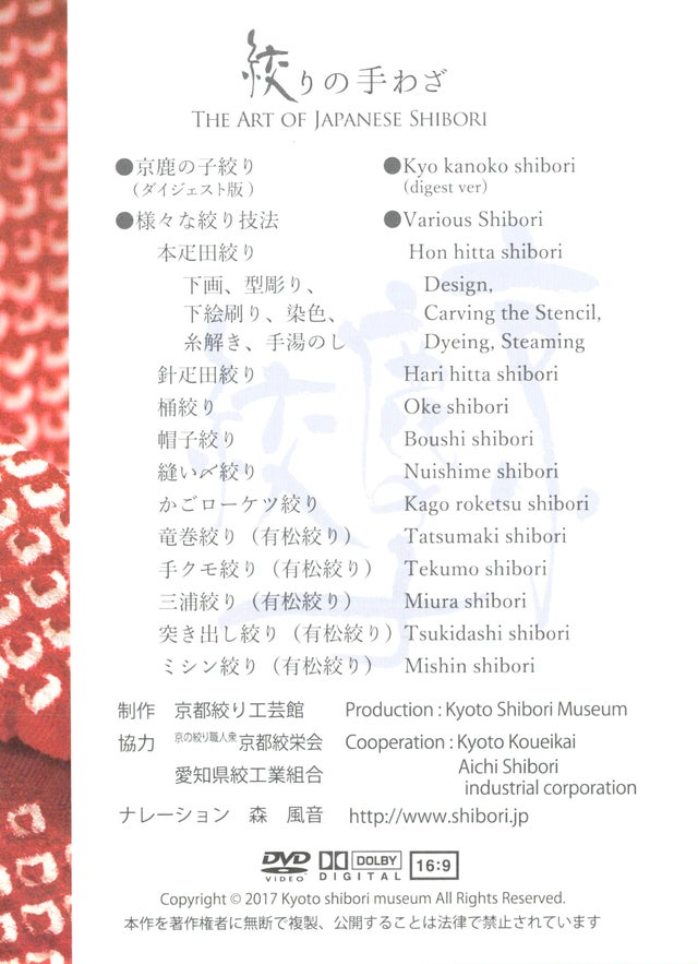 絞り製作の工程を収録したDVD(11技法紹介、日英ナレーション入り 38分)