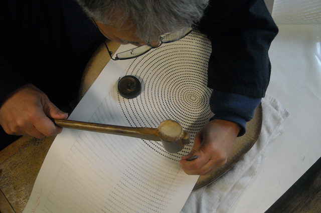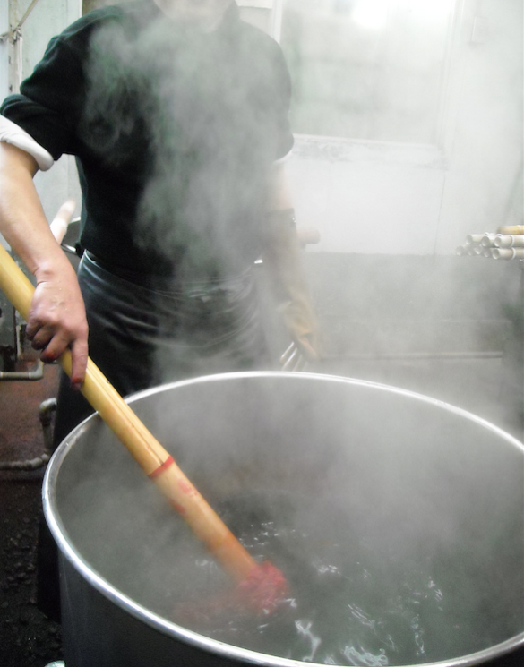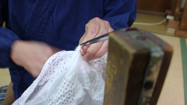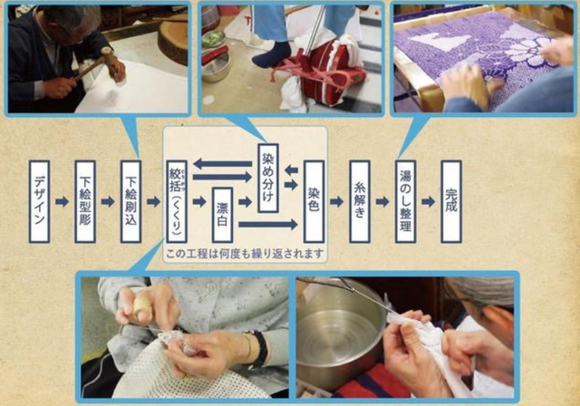 多くの職人の手を経て絞り染め製品は完成します。