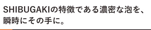 「SHIBUGAKI」は肌に優しい「高起泡配合」という強みも兼ねそろえています。