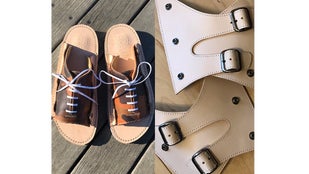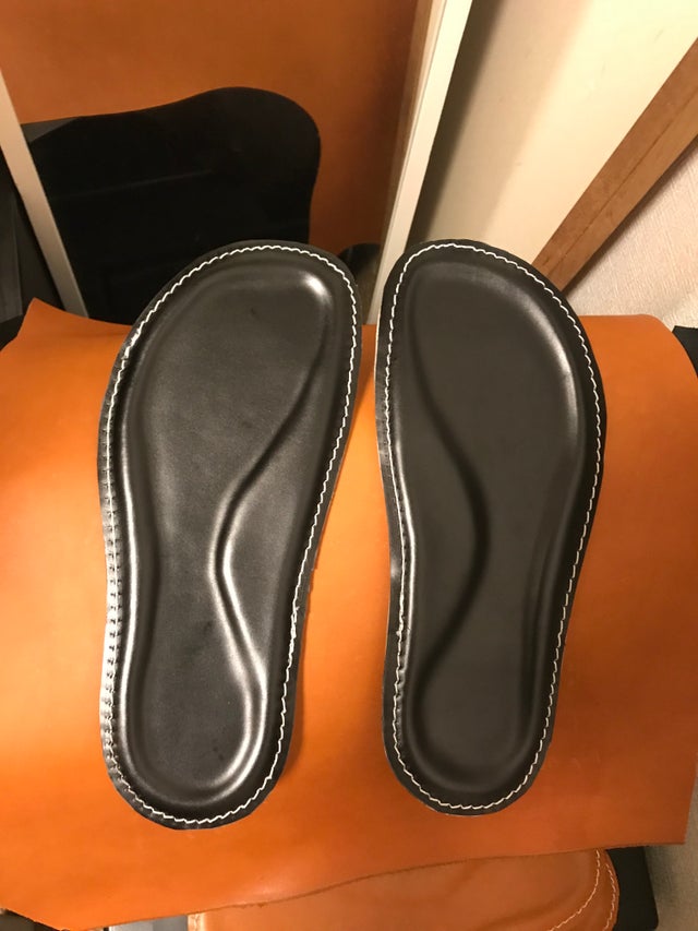 ①完成品1足:通常のサンダル同様にご使用いただけます。革ならではの質感、高級感をお楽しみ頂けます。