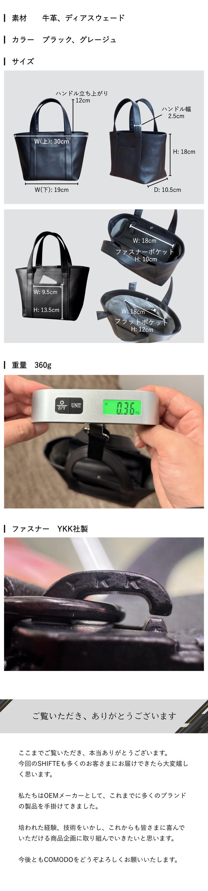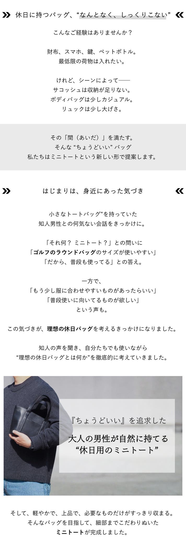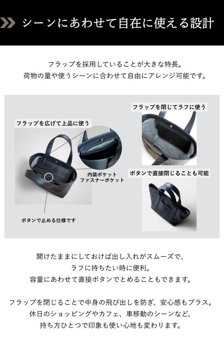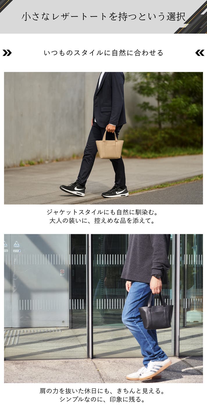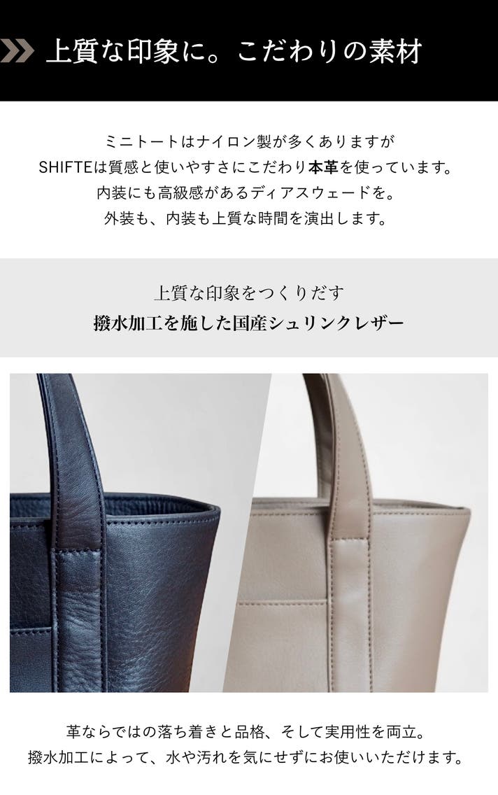- 【機能】 シンプルな中に計算された設計。持つだけで装いが整う、大人のためのミニトート。