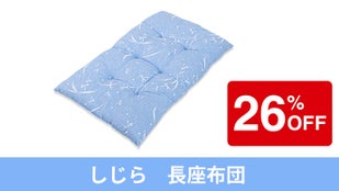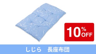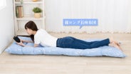 長さ約190cmの超ロング長座布団。端の紐を結んで枕にして、ごろ寝敷布団にもどうぞ。丸めて持ち運びもできるので、車中泊やアウトドアのマットレスがわりとしても大活躍。<サイズ>約65×200cm