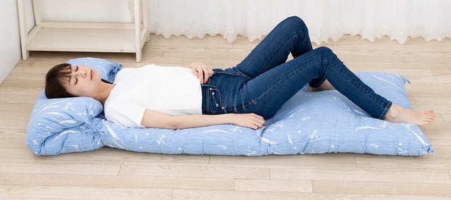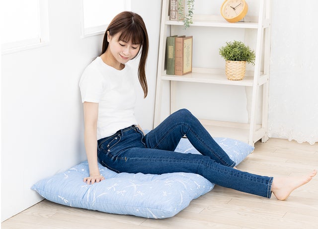 ごろ寝にぴったりな長座布団。中綿はポリエステル綿を使用し、ふんわりやわらかな弾力があります。