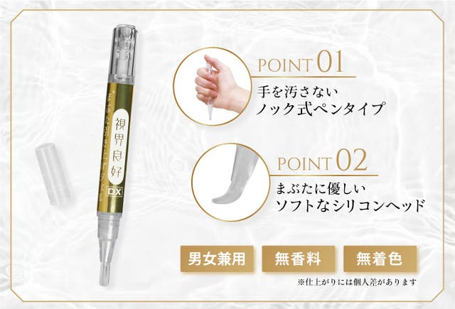 視界良好DXは、皮膜形成成分(接着作用)により肌にハリを持たせることで自然な二重を形成します。