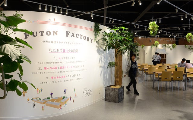 2019年には自社工場隣に打ち合わせスペースなどを備えたカフェテリアを新設。従来の「布団工場」のイメージを変えオープンな体制で、工場見学にも多くの方に来て頂いています。