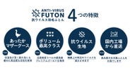 布団の側生地には、抗ウイルス加工の「フルテクト」を使用。繊維上の特定のウイルスを減少させる特殊加工を施し、布団をウイルスから守ります。