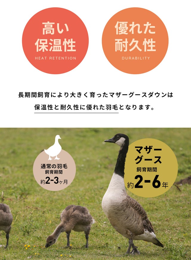- 選ばれし親鳥 ダウンの王様マザーグースをふんだんに1,100ℊ使用