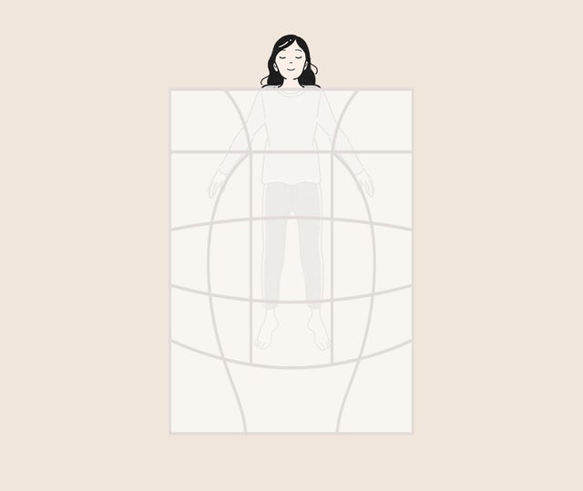 フィット感にこだわった独自開発のキルト[EARTH WRAPキルト]を採用。一般的な羽毛布団のマス目キルトに比べると、身体のラインに添いやすくぴったりと密着。