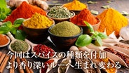 にんにく、しょうがなどの香味野菜の辛味、そして飴色に炒めた玉ねぎ、はちみつ、りんご、マンゴー、バナナの爽やかな甘さがカレーのベースとなり味のグレードをアップさせる。